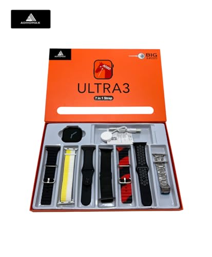 - Elegant Design: A perfect blend of style and functionality for men and women. Affordable Luxury: Get premium features at an unbeatable price. Perfect for Everyone: Whether you're a fitness enthusiast, a tech lover, or someone who values style and convenience, the Ultra3 is designed for you. What’s in the Box: 1 x ADHOMAX Ultra3 Smart Watch 7 x Interchangeable Straps 1 x Wireless Charging Pad 1 x User Manual