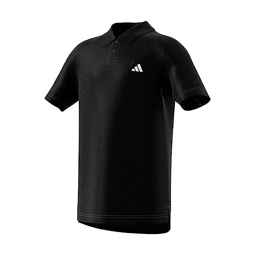 adidas - تيشرت بولو بي كلوب للتنس من اديداس مزين بثلاثة خطوط لوجو العلامة التجارية للأولاد الصغار (كم قصير)