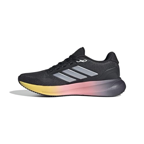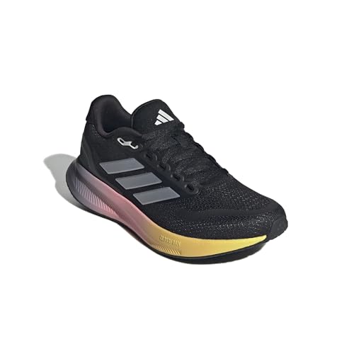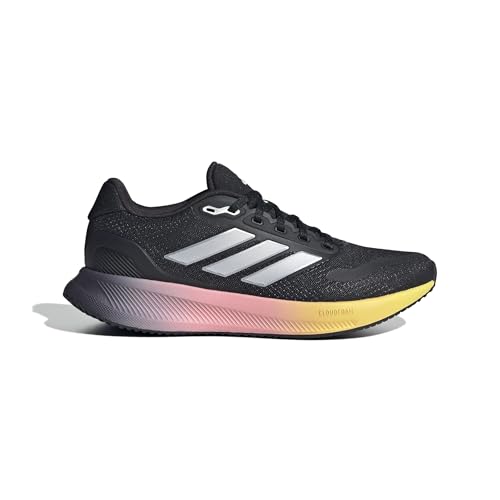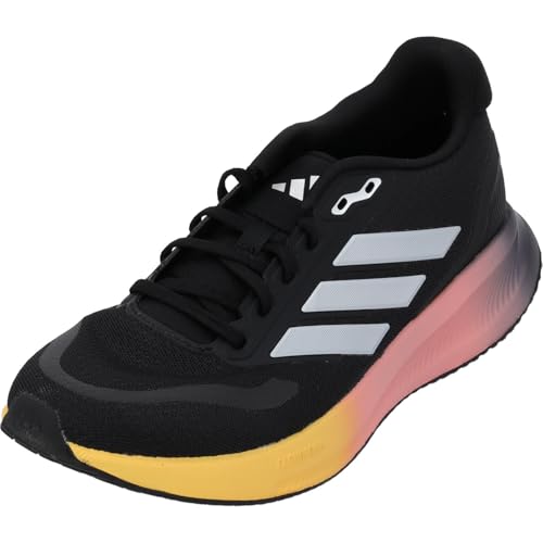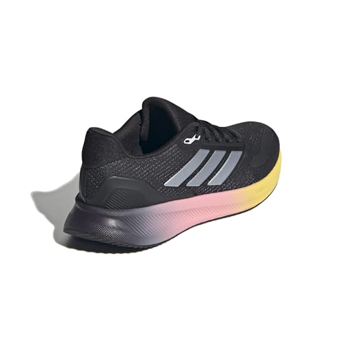 adidas - حذاء جري رن فالكون 5 للنساء من اديداس، لون أسود (كور بلاك)/ فضي معدني (زيرو ميتاليك)/ أزرق فاتح (اورا بلو)، مقاس 36