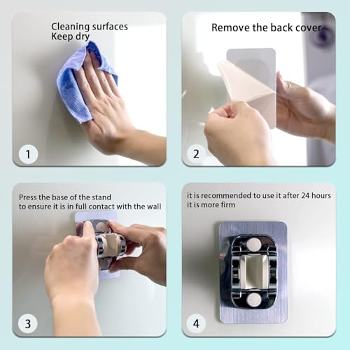 - 【لاصق قوي مزدوج الجوانب】مزود بمادة لاصقة عالية القوة على الوجهين، يتم تثبيت هذا الحامل بأمان على الأسطح الملساء مثل البلاط أو الزجاج أو الرخام دون الحاجة إلى الحفر، مما يمنع تلف الجدار ويوفر تثبيتًا ثابتًا يدوم طويلاً يتحمل ظروف الحمام الرطبة مع توفير راحة البال والأداء اليومي الموثوق.