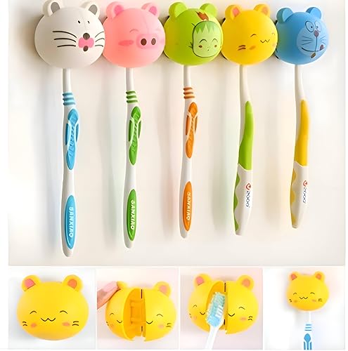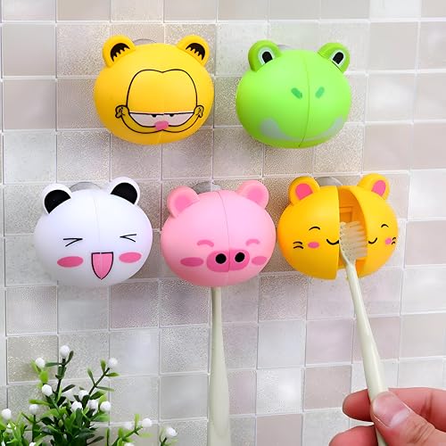 - A wall‑mounted toothbrush holder set of six cute cartoon‑animal designs that can be easily adjusted; the suction‑cup mount sticks securely to tiled or smooth walls, freeing countertop space and keeping brushes upright and tidy.