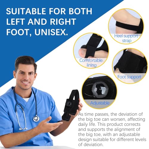 - تصميم مريح: جهاز تقويم طبي مبتكر لإصبع القدم الكبير مع حزام قابل للتعديل وأقفال دوارة لراحة مثالية