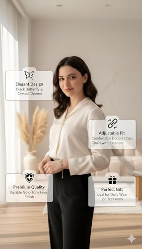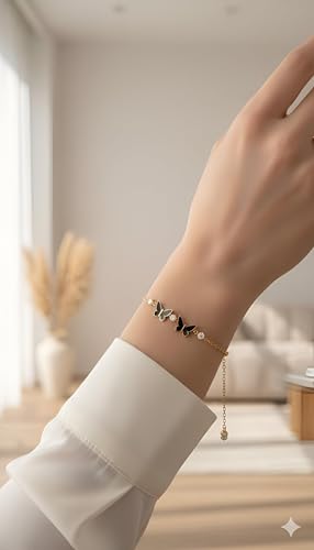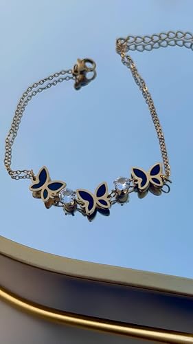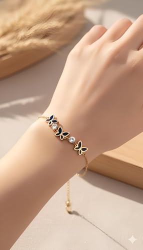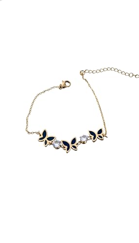 Generic - Adjustable Butterfly Bracelet - Navy Blue Enamel with Sparkling Crystals, Gold Chain, Lobster Clasp for Secure Fit and Elegant Look