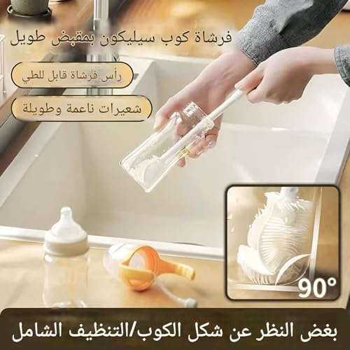 Generic - راس تنظيف قابل للتعديل - راس فرشاة قابل للطي بزوايا قابلة للتعديل لتنظيف عميق للزجاجات، قبضة مريحة، شعيرات ناعمة لزجاجات المياه والزجاجات الرياضية والاباريق والحاويات ذات الرقبة الضيقة