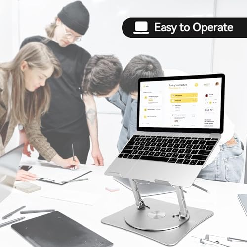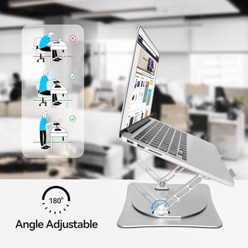 - Ergonomic Design: Improves posture and reduces neck & back strain 360° Rotating Base: Smooth rotation for flexible screen positioning Adjustable Height & Angles: Customize your setup for daily comfort Foldable & Portable: Easy to store, carry, and save desk space Stable & Durable: Strong support for laptops up to 16 inches