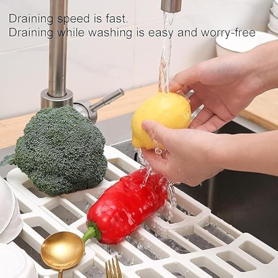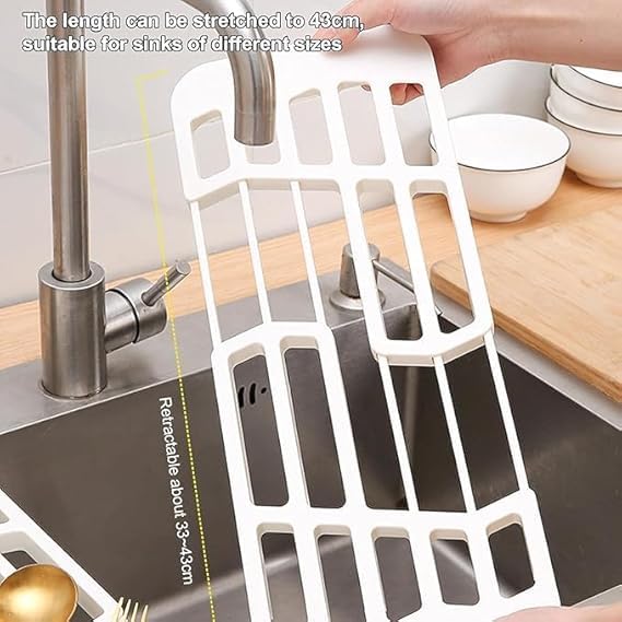 Spaceshoop - رف تجفيف أطباق قابل للتعديل، لوح تصريف بتصميم متداخل للحوض (أبيض)