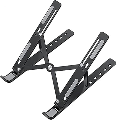 - حامل لاب توب ألومنيوم قابل للطي والتعديل مع شنطة تخزين، تصميم وسادة سيليكون غير قابلة للانزلاق مع 7 مستويات (اللون اسود).