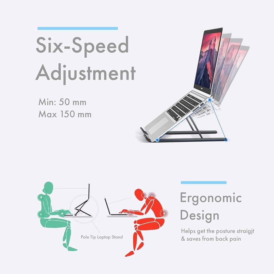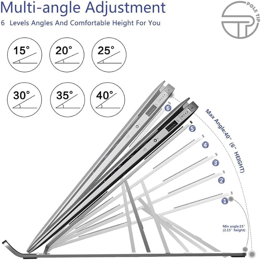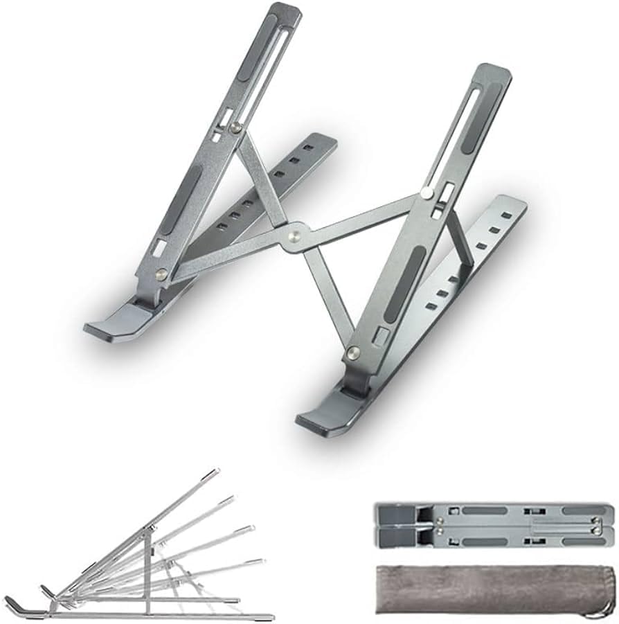 Generic - Adjustable Laptop Stand, 6-Level Height Settings, 15-40° Angles, Aluminium Portable Riser for 10-15.6" Devices, Silver