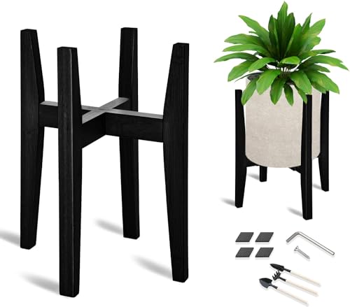 XICEN - Adjustable Plant Stand Indoor, Bamboo Mid Century Modern Plants Stands, Corner Flower Holder for Living Room, Fits 8 to 12 Inches Pots, (Pot & Plant Not Included)(Black, 1 Pack)