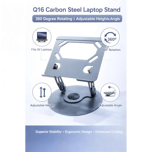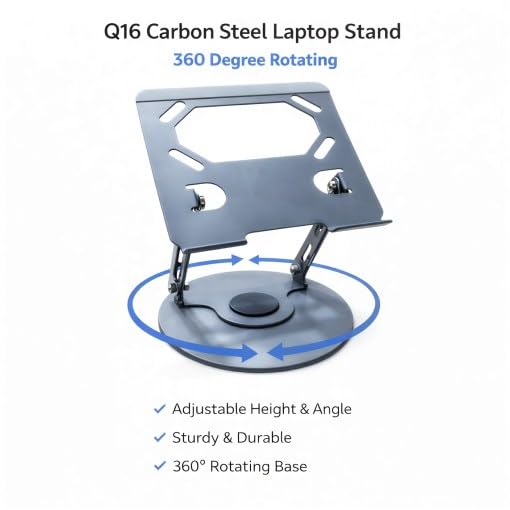 Generic - Adjustable Rotating Laptop Stand for Ergonomic Desk Use, 360‑Degree Rotation, Carbon Steel Construction, Foldable Heat‑Dissipating Design for Laptops up to 17 Inches