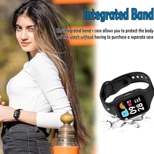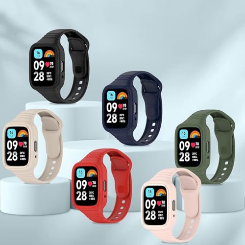Generic - Adjustable Silicone Replacement Sports Watch Band with Bumper Protective Case, Compatible with Xiaomi Redmi 3 Lite/Redmi Watch 3 Active