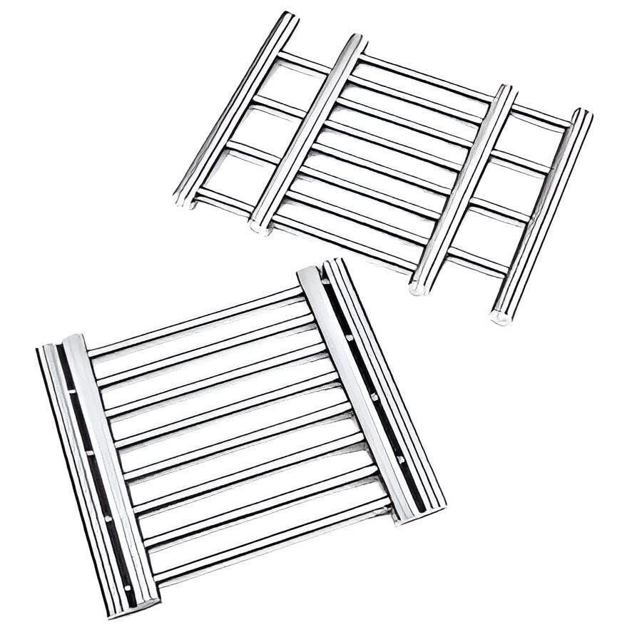 Generic - رف اطباق ستانلس ستيل قابل للتعديل - حامل مقاوم للحرارة للاواني الساخنة بلون فضي لتقديم امن وحماية الطاولة (قطعة 2)