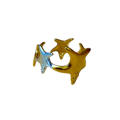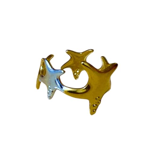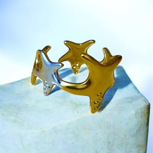 cherry accessories - Adjustable Starfish Ring for Women – Beach-Inspired Two-Tone Gold & Silver Jewelry, Summer Gift Idea