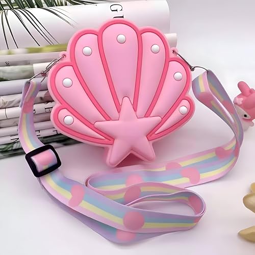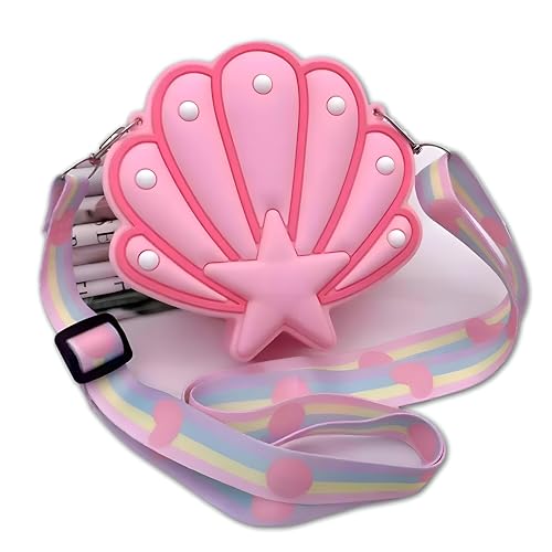 Generic - شنطة يد بحزام قابل للتعديل - مجموعة من 4 قطع مصنوعة من السيليكون بتصميم صدف البحر مع زخارف نجم البحر، مثالية للمدرسة والحفلات ومواعيد اللعب. (بينك)