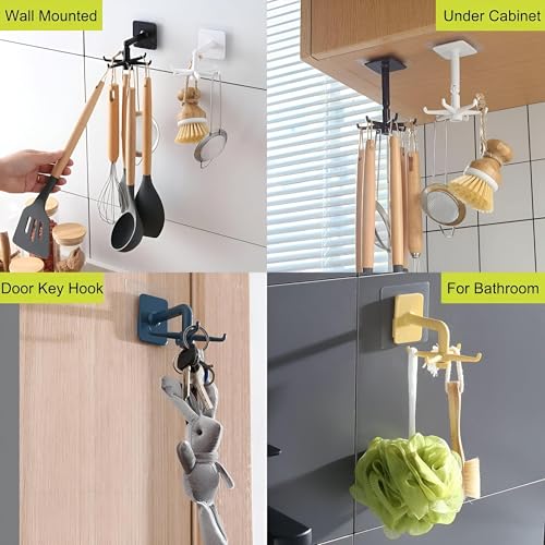 - This innovative wall hook is made of high-quality material, which allows it to be rotated ٣٦٠ a full degree; its design facilitates easy orientation, ensuring flexibility of use without the risk of tilting, making it practical and reliable for various household uses.