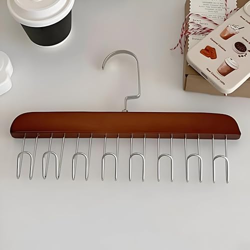 - These wooden hangers feature 8 adjustable hooks suitable for belts, hangers, underwear and scarves. Its design comes in two pieces with foldable hooks, allowing the perfect organization of your wardrobe for both men and women. Save an efficient space while keeping your clothes neatly organized, eliminating the hassle of messes in your closet.