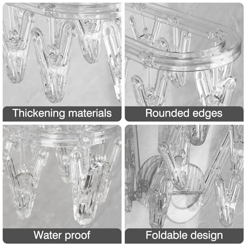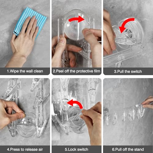 Adorila - منشر غسيل مع 9 مشابك، حامل تجفيف الملابس يثبت على الحائط بتصميم قابل للطي مع قاعدة لاصقة للملابس الداخلية والشرابات من ادريلا، فضي شفاف