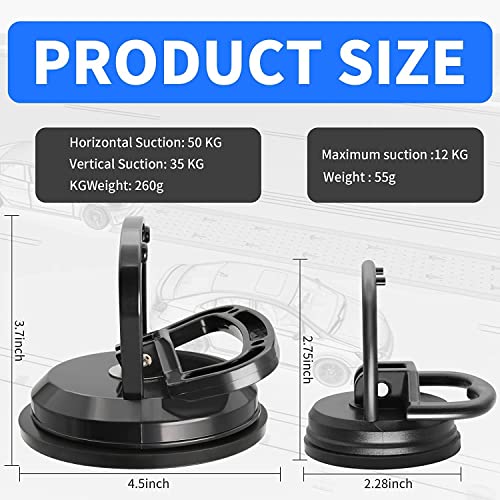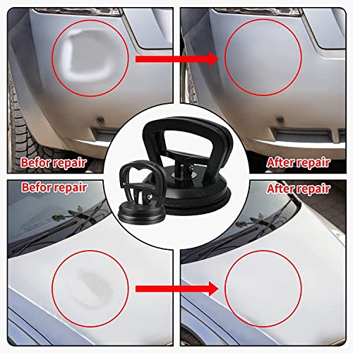 - 【Two Sizes】1 x 4.5 inch Suction Cup, 2 x 2.25 inch Suction cup. Suction cup dent remover tool kit allows you to remove dings and small dents on certain areas of your vehicle.