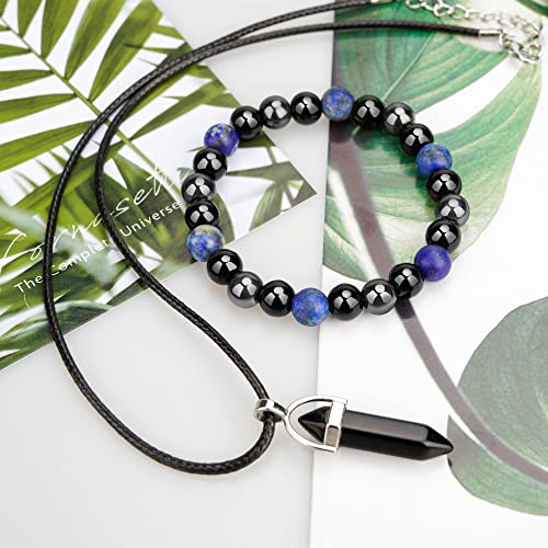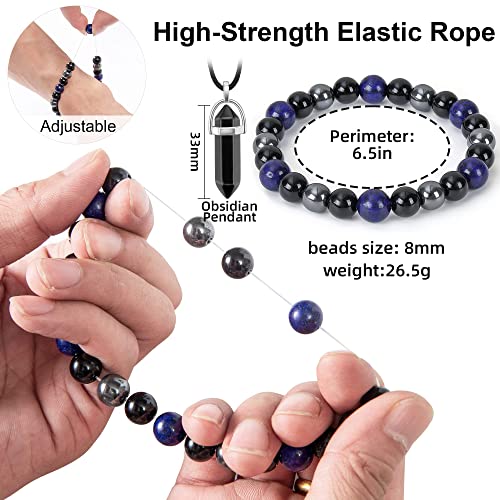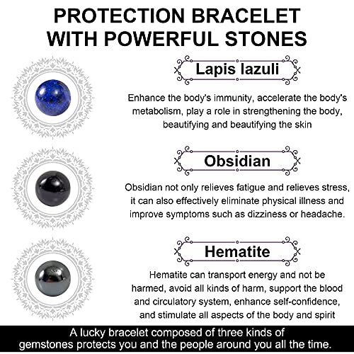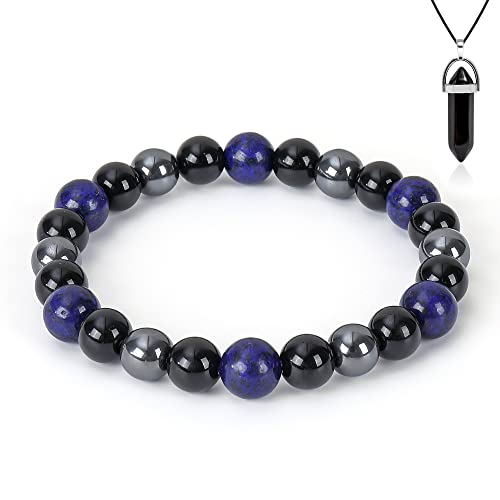 ADSIASIA - Men's & Women's Hematite Obsidian Triple Protection Bracelet (Black, 8mm)