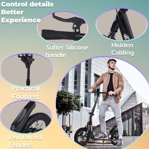 Generic - Adult Scooter 330 Lbs,Folding Commuter Kick Scooter for Adults & Teens,Big Wheel,Adjustable Heigh,Rear Holding Brake,Lightweight Sports Commuter Scooter,Ideal Gift for Kids Tenns Adults,BLACK