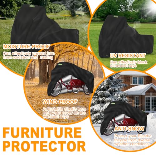 JXXPGG - Adult Tricycle Cover Electric Trike Cover,Heavy Duty 600D Waterproof 3 Wheeled Bicycle Bike Cover for Outdoor Storage,Black,74.8*30*43.7inch
