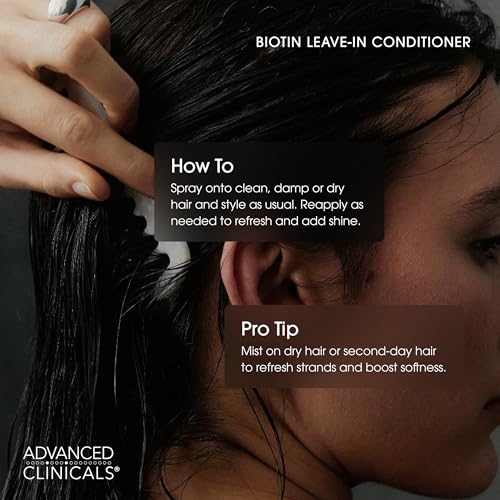 Advanced Clinicals - Advanced Clinicals Biotin Hair Spray Thicken & Shine Leave In Treatment, Biotin Detangling Formula Nourishes Fine, Damaged, Or Frizz Prone Hair & Supports Scalp Health For Strong Thick Hair, 8 Fl Oz