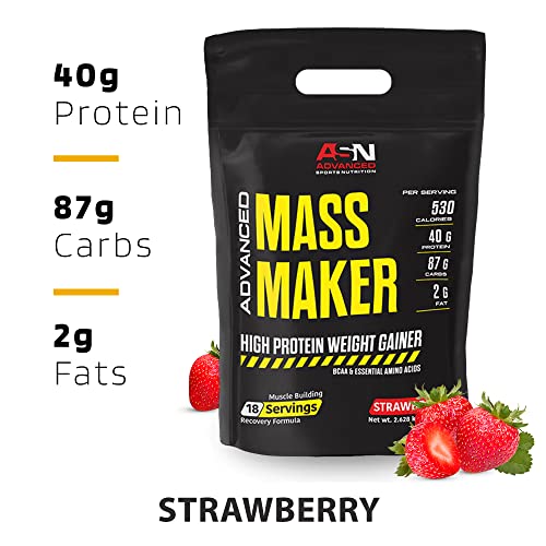 Advanced - Advanced sports nutrition (asn) | advanced mass maker | strawberry | 18 servings | 40g protein | high protein weight gainer | bcaa | muscle building | recovery formula | quick absorbing | 530 calories