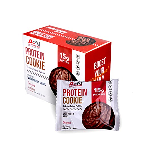 ASN - Advanced sports nutrition (asn) | advanced protein cookies | original | 4 cookies | 15g protein | dark chocolate dipped | healthy treat | no added sugar | gluten-free | soy-free | no preservatives