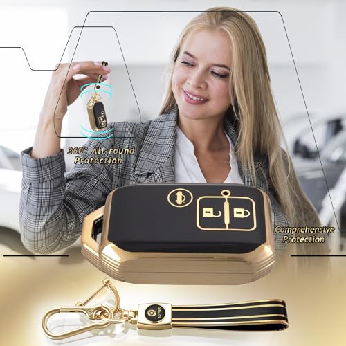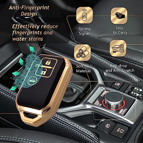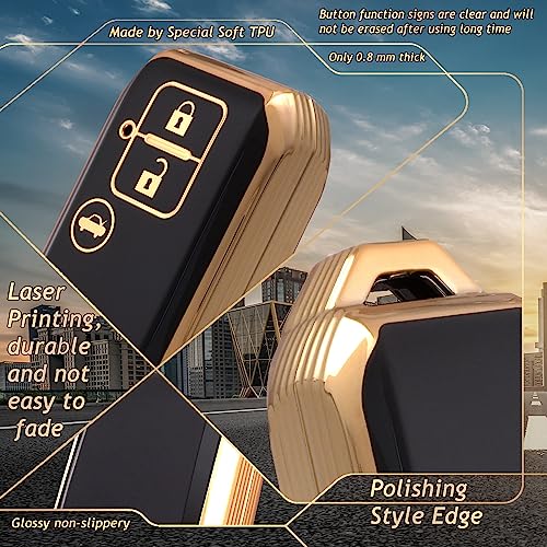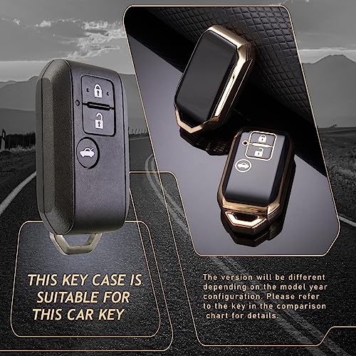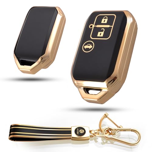 ADVOX - TPU Key Cover Suzuki Baleno, Grand Vitara, XL6, Swift, New Brezza 2022, Ertiga, Dzire (3 Button Smart Key, Black Gold) with Keychain