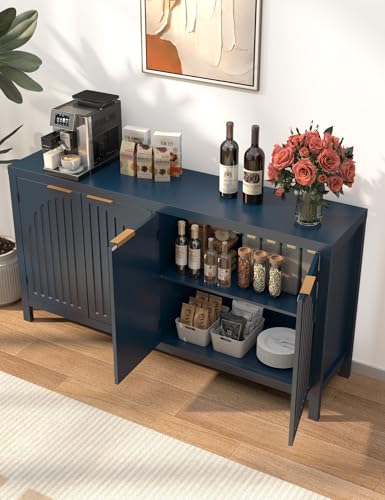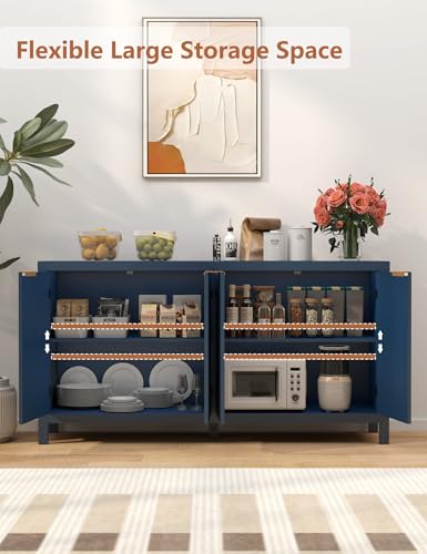 AeasyG - 59" Sideboard Buffet Cabinet with Storage, Wood Cupboard with Adjustable Shelf, Mid-Century Accent Coffee Bar Console Table with Wooden Feet for Living Room, Dining Room, Hallway