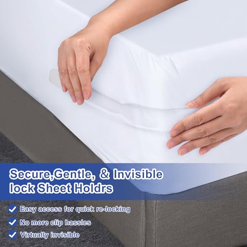 - حافظ على سلامتك وخلوها من التجاعيد: تحافظ حاملات ملاءات السرير الخاصة بنا على ملاءاتك ثابتة في مكانها، مما يمنع الانزلاق والتجاعيد للحصول على مظهر ناعم ومرتب. استمتع بليلة مريحة دون الحاجة إلى تعديلات مستمرة.