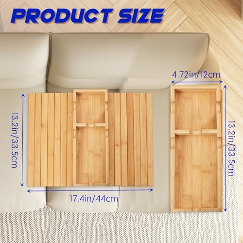 - Spacious and Practical Design: The 4-inch large cup holder can hold large mugs, and the sofa armrest tray measures 13.2 inches wide and 17.4 inches long (unfolded size), which is suitable for most wide sofas. It can also be used as a placemat, drink holder and food tray. Convenient to use everywhere.