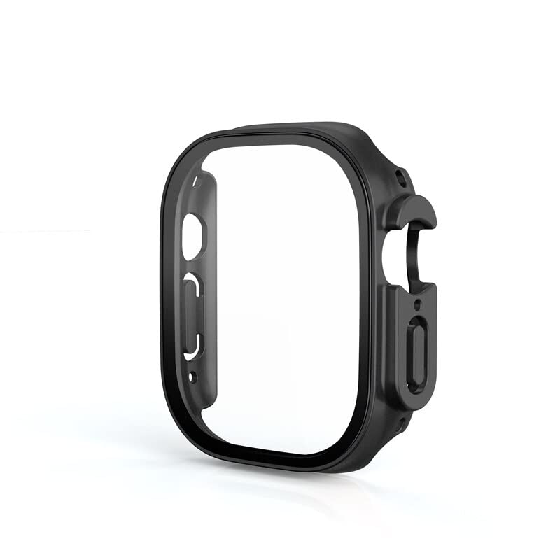 AEMALL - Tempered Glass Case for Apple Watch Ultra 49mm Cover Built-in Screen Protector Full Coverage for iWatch Series Ultra 49mm Cases (Color : Original black, Size : Ultra 49mm)