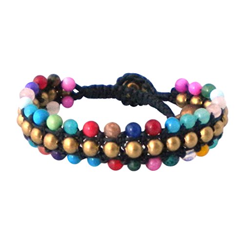 AeraVida - AeraVida Multi-Stone Harmony Fashion Brass Beads Toggle Bracelet | Brass Bracelet Beads | Bracelet For Women | Brass Bracelet | Toggle Bracelet Beads