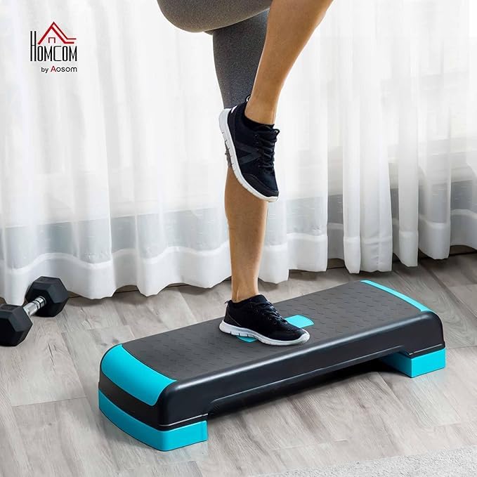 Generic - Aerobic Step, 10cm, 15cm & 20cm Height Adjustable Steppers for Exercise Workout, Nonslip Step Board Great for Home & Office, Black and Blue