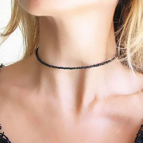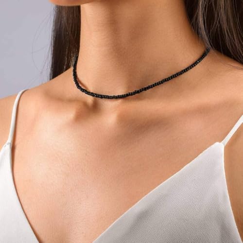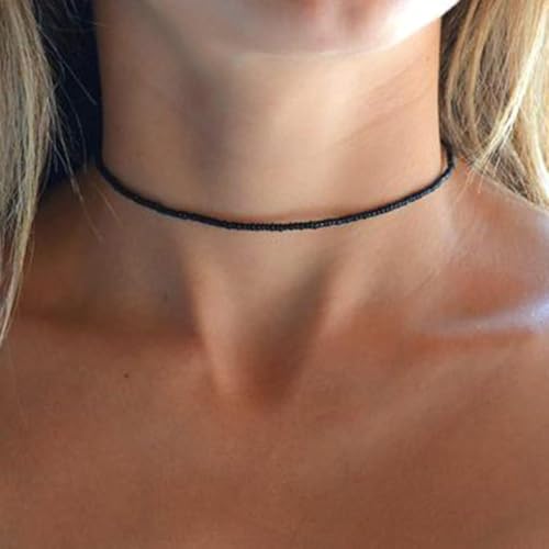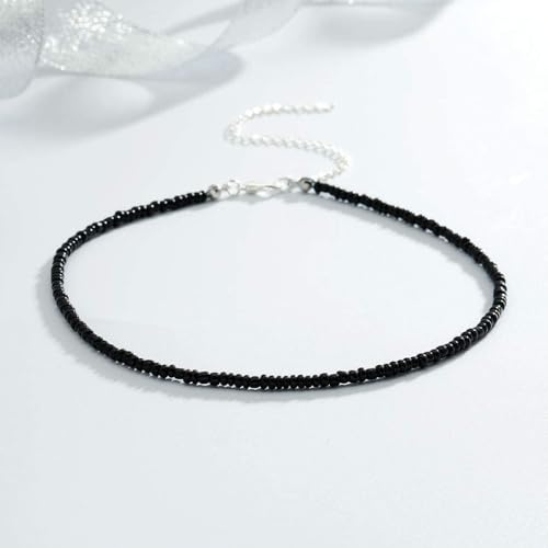 Aetorgc - Boho Bead Necklaces Chain Black Seed Beaded Necklace Handmade Surfer Glass Beads Necklaces Jewelry for Women and Girls