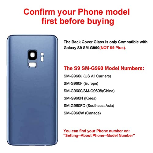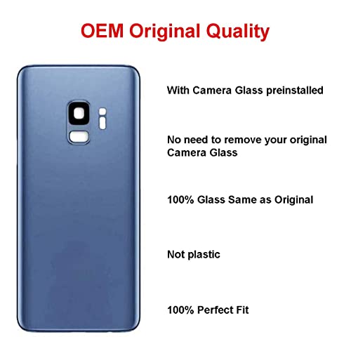 - غطاء خلفي زجاجي خلفي بديل من صانع المعدات الأصلية لهاتف سامسونج جالاكسي S9 أزرق جميع الطرازات (ليس لـ S9 بلس)