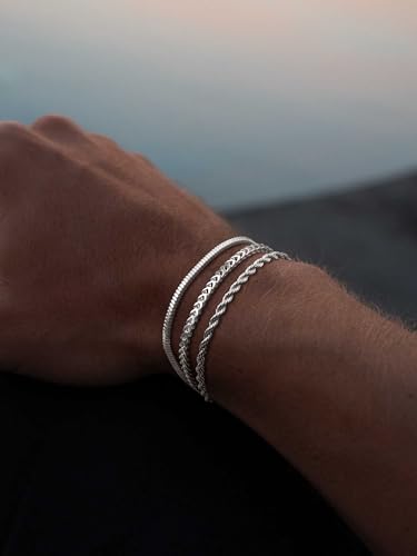 Affolace - طقم أساور قابلة للتكديس للرجال، سوار سلسلة رقيق من الفضة الإسترليني للرجال لا يفقد بريقه، مجموعة أساور بسيطة من سلاسل كوبية وحية وحبل للرجال من افولاس مكون من 3 قطع، مقاسات 22 و21 و20 و 19 و17 و16 سم
