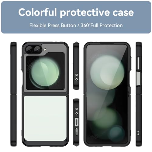 Afikyutu - جراب حماية من افيكيوتو لهاتف سامسونج جالاكسي Z فليب 6، جراب مع لوحة خلفية شفافة، جراب صلب من البولي كربونات والبولي يوريثين الحراري من السيليكون ممتص للصدمات متوافق مع سامسونج جالاكسي Z فليب 6 - أسود