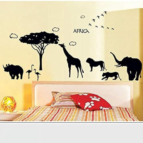 Other - African amorous feelings of animals the lion elephants wall stickers creative background bar black glass stickers can be removed