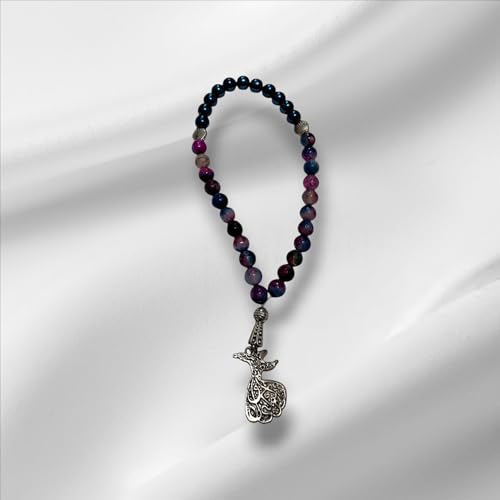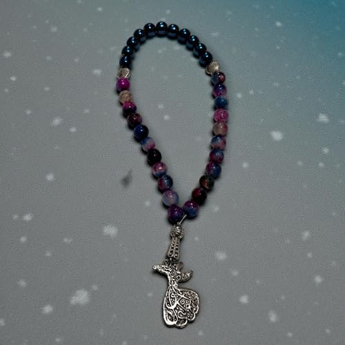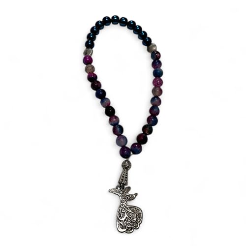Generic - Agate Beaded Prayer Necklace with Ornate Metal Pendant, Purple and Blue Tones, Shell Accents