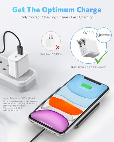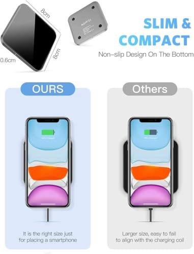 AGPTEK - شاحن لاسلكي معتمد من كيو اي سريع بحد أقصى 15 وات، متوافق مع آيفون 15/14/13/12/11 وماكس وXS ماكس و8، ولسامسونج جالاكسي S24/S23/S22/S20/S10، وإيربودز برو من اجب تيك، أسود (بدون محول تيار متردد)