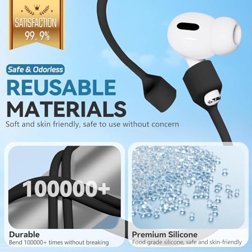- High Quality Material - This anti lost strap is made of premium soft silicone which the surface is treated with oil spray, so that dust and stains are not easy to adhere.The earbuds holder feels comfortable, soft and smooth, can be bent and stretched at will and is not easy to damage