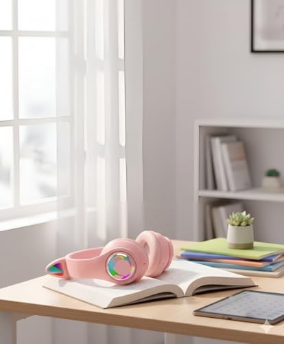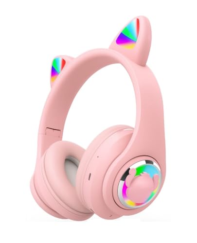 Generic - هيدفون بلوتوث بإضاءة RGB بتصميم مريح لعزل الضوضاء - صوت قوي وواضح وتصميم مثالي للأطفال - وقت تشغيل حتى 15 ساعة - موديل AH-803 (بينك)