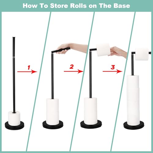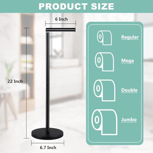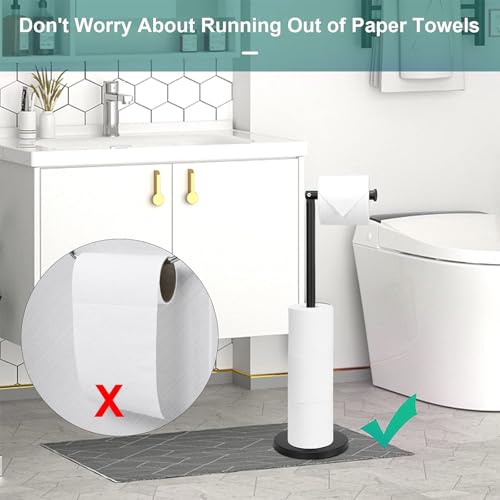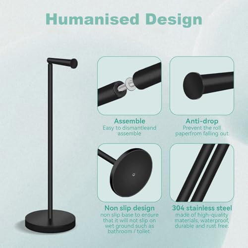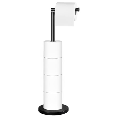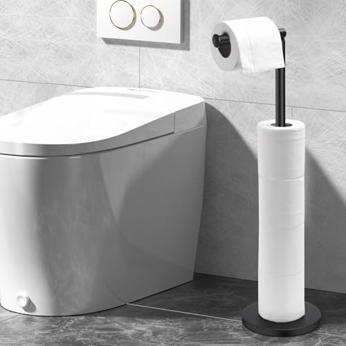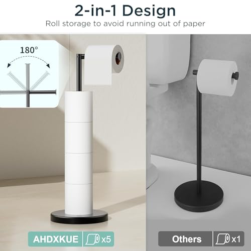 AHDXKUE - حامل ورق تواليت قائم بذاته من ايه اتش دي اكس كيو يو اي، حامل ورق تواليت من الفولاذ المقاوم للصدأ مع قاعدة ثقيلة، حامل لفافة تواليت بدون ثقب للحمام، لون أسود