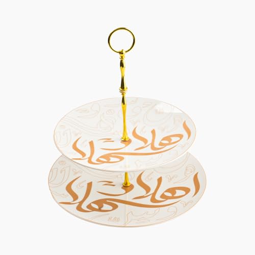 - Ahlan W Sahlan 2-Tier Cake Stand – Gold Porcelain – Elegant Serving