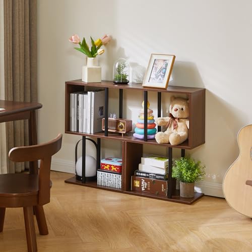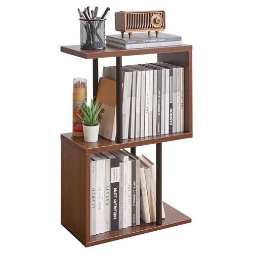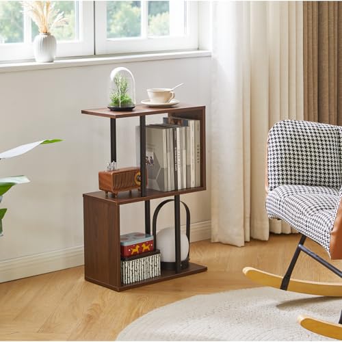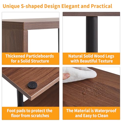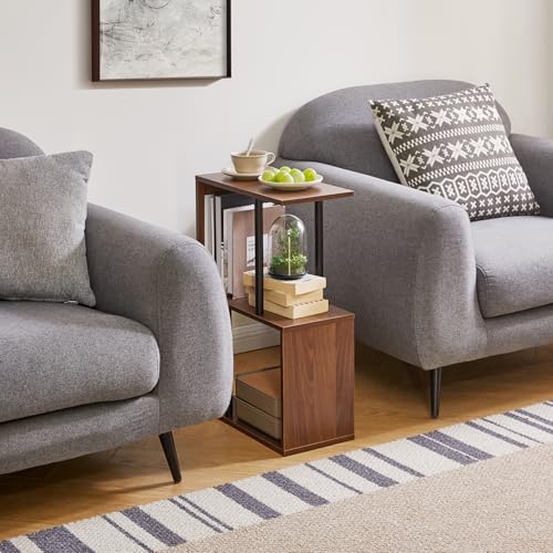 Aibiju - S-Shaped Side Table, 3-Tier End Table with Open Storage Shelves, Non-Slip Feet, Modern Style Nightstand, Narrow Side Table for Small Space Living Room Bedroom Light Walnut YD-ST003LW