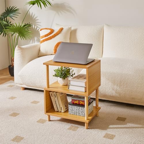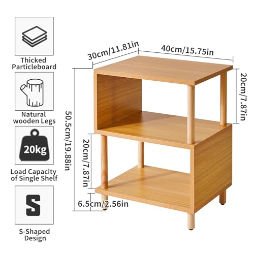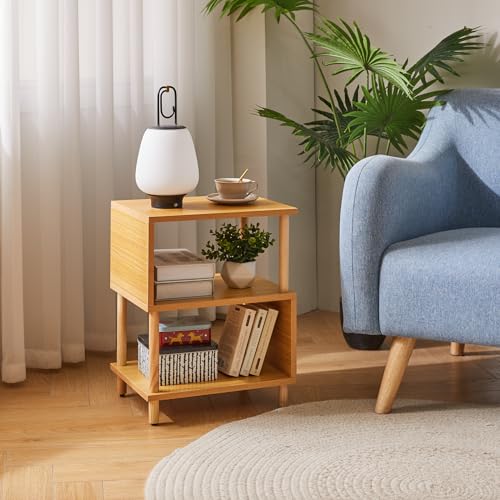 Aibiju - طاولة جانبية خشبية مع رف مفتوح من ايبيجو، طاولة جانبية للسرير على شكل حرف S من 3 طبقات، 20 انش من الخشب الطبيعي YD-TM152N