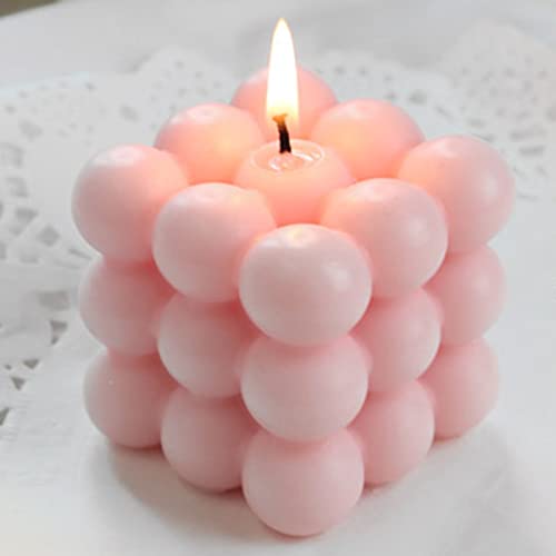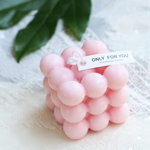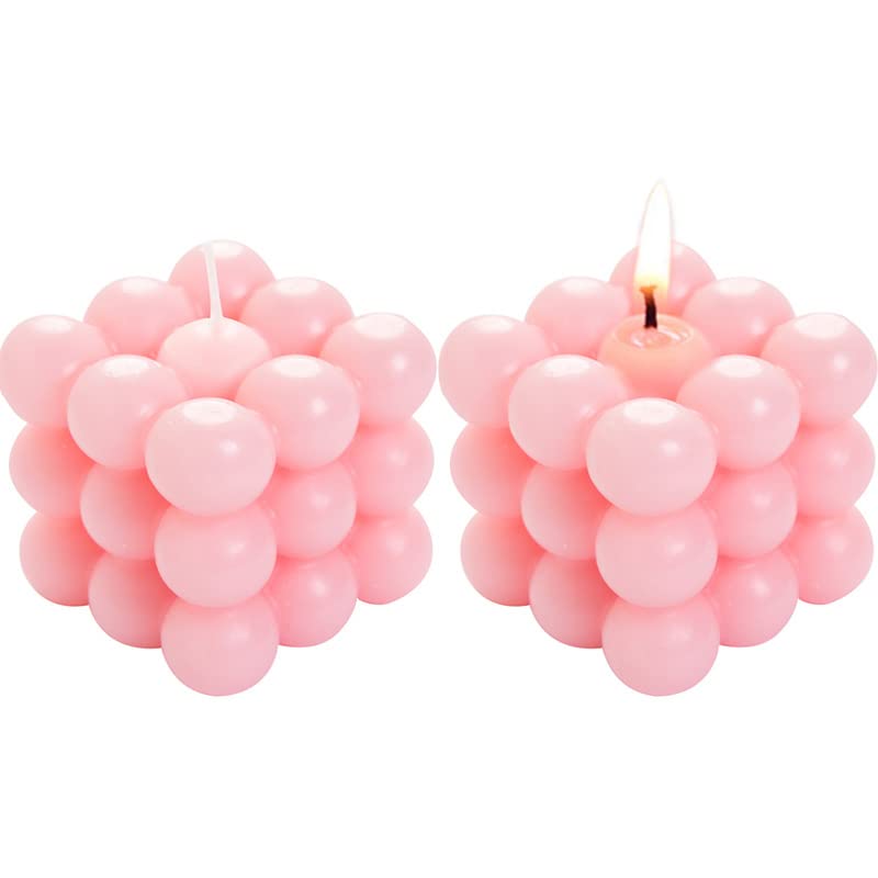 AICHLO - AICHLO 2PCS Bubble Candle White Aromatherapy Shaped Handmade Cube Vanilla Scented Trendy Room Decor Soy Fun for Girls Aesthetic (Pink)