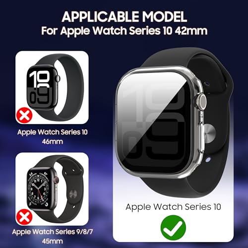 - Perfect fit: Our protective case is designed specifically for Apple Watch Series 10/11 42mm, with precise hole positioning on every detail of the watch, seamlessly fitting your device's curves. Suitable for Apple Watch Series 10/11 42mm tempered glass screen protector perfectly fits the watch screen without affecting the normal use of the watch's functions